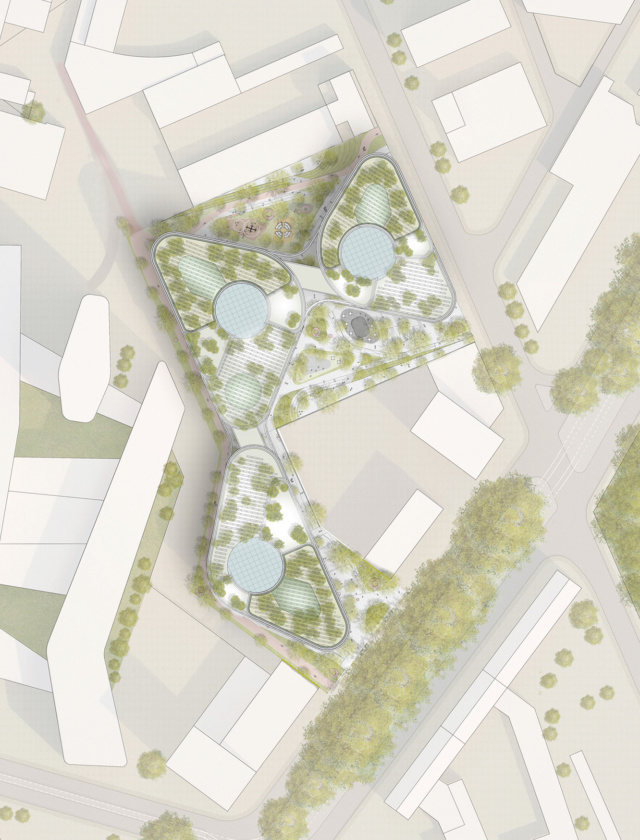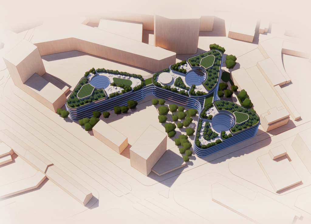 The previously completely built-up and therefore sealed area is being transformed into a sustainable campus through urban urban design. Short distances and a mix that ensures a high quality of stay create a new meeting place as a model for the future. An office campus consisting of three detached and terraced buildings is being built on the 1.4 hectare site. These are connected by innovative path concepts, green spaces, play and activity areas as well as other recreational facilities, creating the Green Campus as a whole.